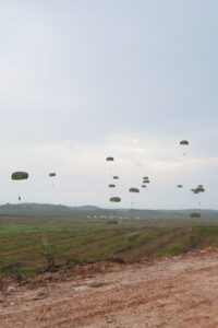 ” Kegiatan latihan yang dimulai dari Penerjunan KDOL yang dilaksanakan semalam di bandara. Penembakan SUL WING dari Pesawat F- 16 TNI AU, terjun taktis dari Batalyon 501/Bajra Yudha Kostrad, Latihan penindakan aksi penyelundupan di wilayah perairan yang melibatkan 2 unsur KRI TNI AL dan Latihan Perebutan Cepat oleh Koopssus TNI,” ungkap Kolonel Nur Wahyudi.